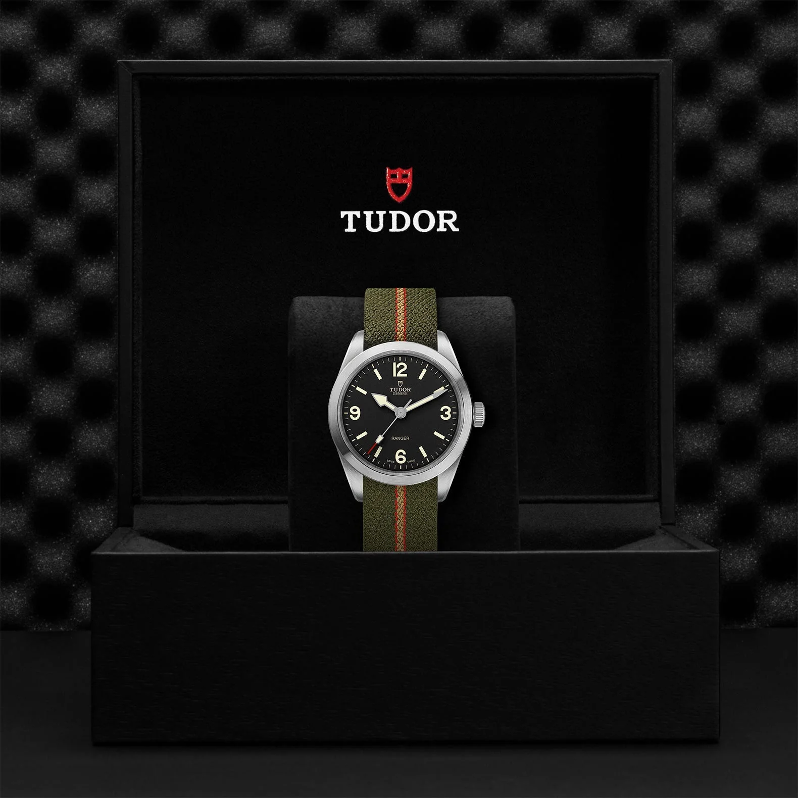 39 mm steel case, Black dial